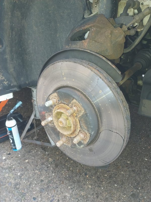 Bremsscheiben angeschliffen von den verschlissenen Bremsbelägen und stark verrostet. Diese Bremsscheiben müssen erneuert werden. Damit die Bremsscheiben auch plan auf der Radnabe aufliegen, wurde die Radnabe entrostet und gereinigt.